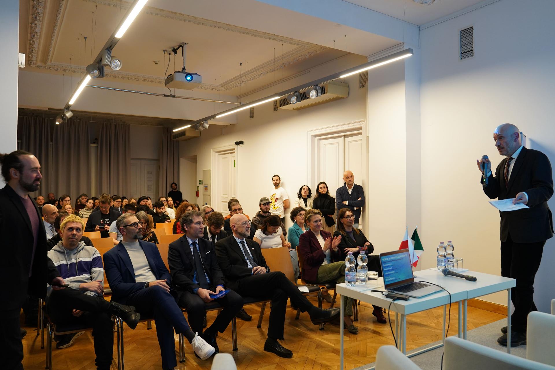 Po powitaniu wygłoszonym przez Dyrektora Instytutu Fabio Troisi, wydarzenie otworzył Ambasador Włoch w Polsce Luca Franchetti Pardo. W trakcie spotkania głos zabrali również Dyrektor Biura ICE w Warszawie Roberto Cafiero, Dyrektor Generalna IIDEA Thalita Malagò oraz Dyrektor Video Games Poland Dominika Urbańska-Galanciak.